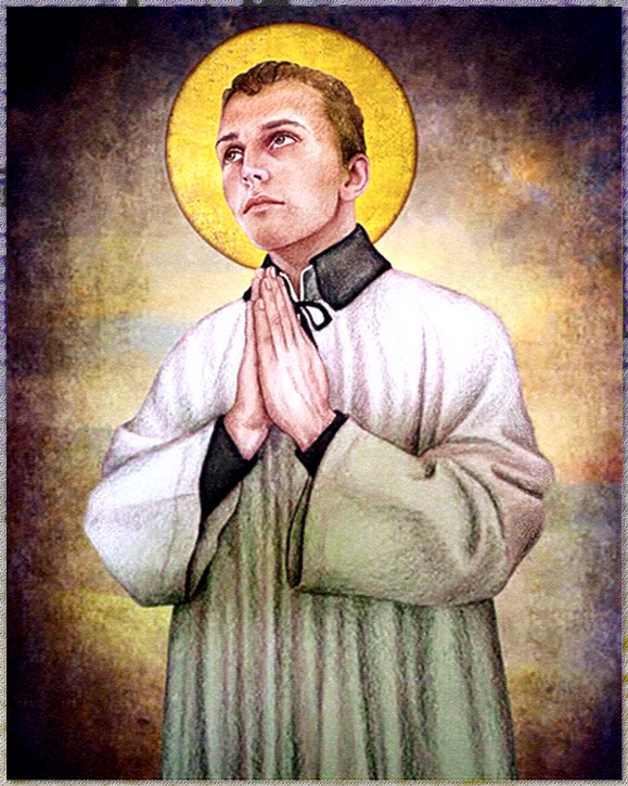 Depois desse fato, o jovem discerniu sua vocação à vida religiosa como jesuíta, por isso, enfrentou familiares e, ousadamente, fugiu sozinho, a pé, e foi parar na Companhia de Jesus. Acolhido pelo Provincial, que o ouviu e se encantou com sua história, com somente 18 anos de idade, viveu apenas 9 meses no Noviciado porque em 1568 adquiriu uma misteriosa febre e, antes de morrer, os sacerdotes ouviram do seus lábios sorridentes dizerem: Maria veio buscar-me, acompanhada de virgens para me levar consigo.