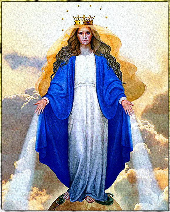 Logo após, formou-se em torno da Virgem um quadro oval no alto, na qual estavam escritas em letras de ouro: Ó Maria concebida sem pecado, rogai por nós que recorremos a vós. Esta foi a prova do Céu de que Nossa Senhora é imaculada e concebida sem o pecado original.